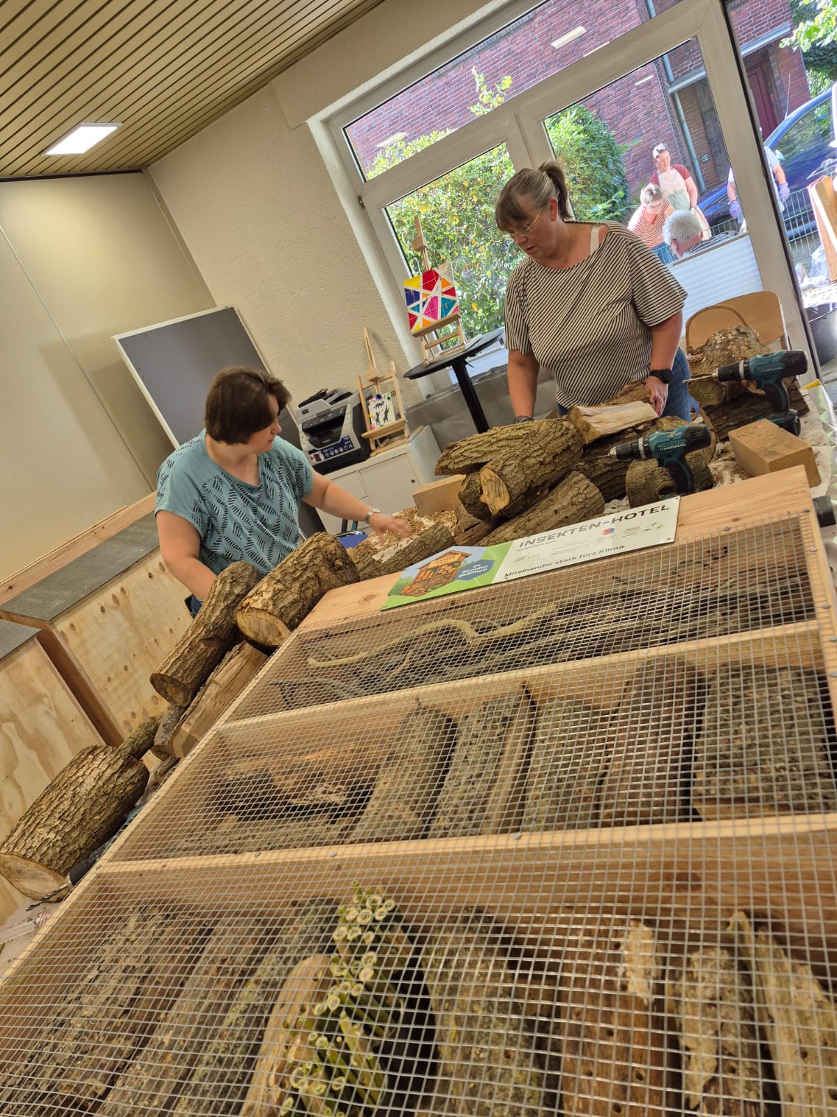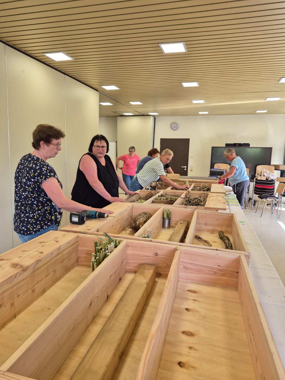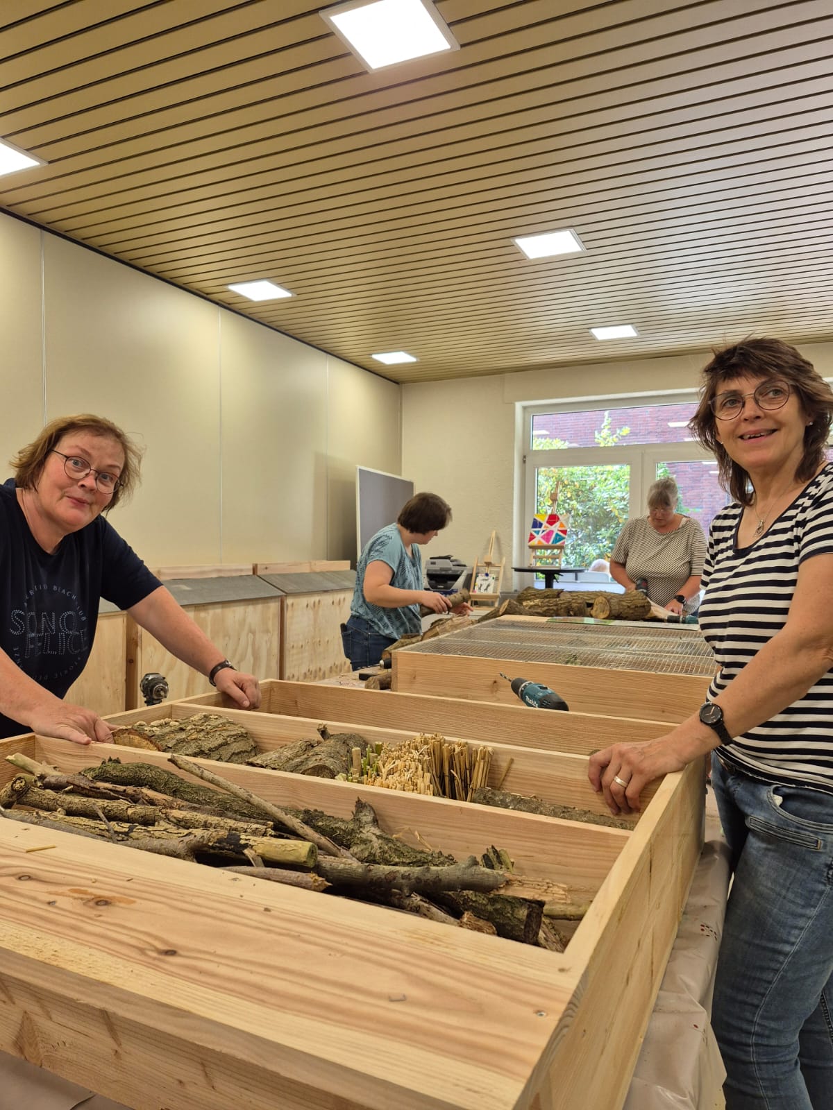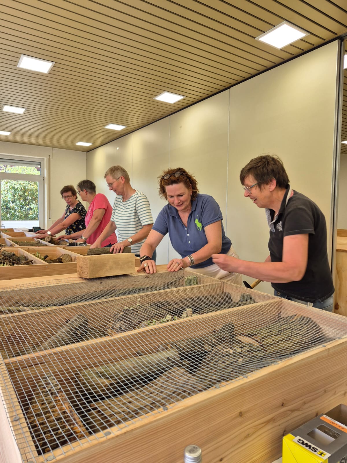 Es wurden gemeinsam Insektenhotels gebaut, bestückt und in den Ortsvereinen aufgestellt.