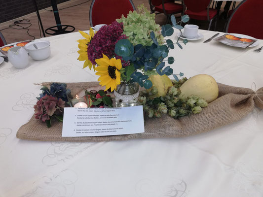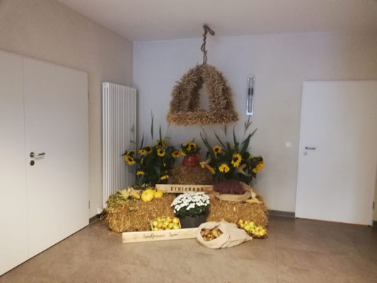 Natürlich gab es wieder ein Farbspektakel im Eingangsbereich in Verbindung mit der Erntekrone, sowie auch die Tischdeko war ein gelungener Hingucker....