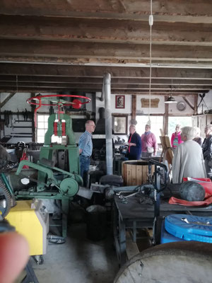 Zu Beginn gab es Kaffee, Kuchen und Schnittchen. Alles selbstgebacken. Danach teilten wir uns in drei Gruppen auf. Unter fachkundiger Führung von Mitgliedern des Heimatvereins erfuhren wir viel über die Tischlerei, das Sägewerk und die Schmiede. Alles noch in Betrieb. Zudem sahen wir ein original eingerichtetes Wohnhaus, eine Schule, ein Kramlädchen mit Artikeln teil auch zum Kaufen, ein Archiv und ein Trauzimmer. Das wechselhafte Wetter meinte es an diesem Nachmittag gut mit uns. So fuhren am späten Nachmittag alle Seniorinnen bestens gelaunt nach Hause.
