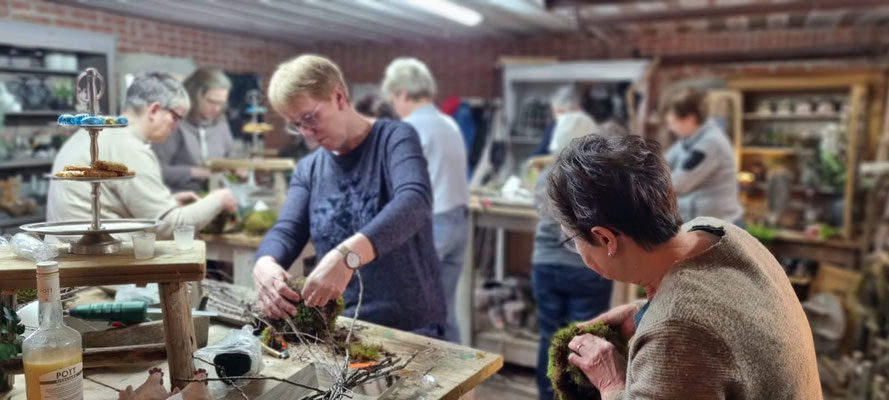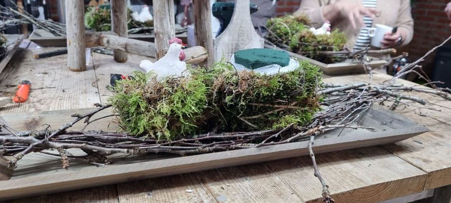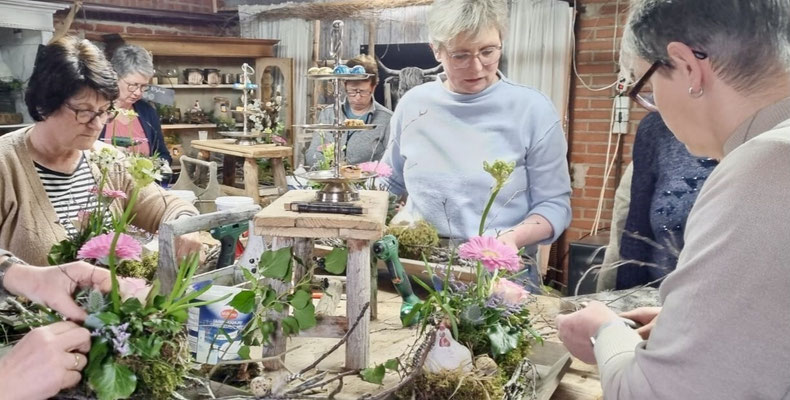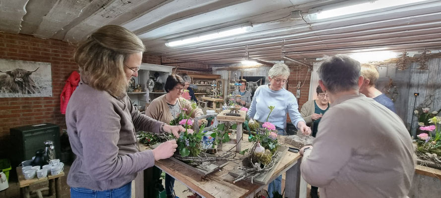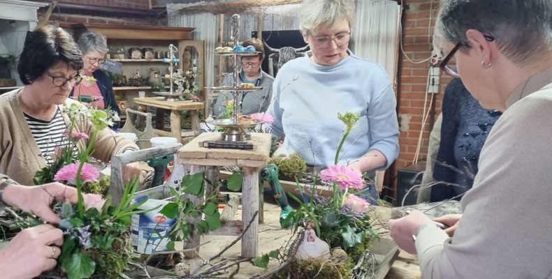 Im März haben wir in einem Workshop Frühlingsgestecke hergestellt.